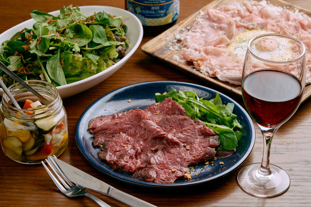 店名の通り、牛肉を使った料理が豊富!独自の繋がりで仕入れる質の良い黒毛和牛を、リーズナブルにご提供♪中でも必食は、とろける肉の旨みと柔らかさを楽しめる「霜降り和牛の炙りカルパッチョ」。薄くスライスしたお肉に特製のタレを絡め、サッと炙って香ばしさをプラス。賞味期限がなんと60秒、たっぷりのイクラを乗せた肉寿司「にくら」や、絶妙な火入れで楽しむ旨みたっぷり&ジューシーな「牛ハラミロースト」も自慢です!