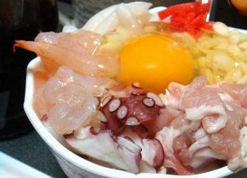 新鮮な魚介類とお肉を混ぜてアツアツのお好み焼きをお召し上がり下さい!鉄板で焦げるソースのにおいがたまりません♪