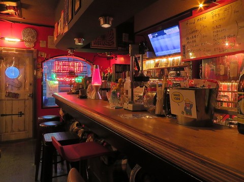 レトロな雰囲気漂う、赤を基調とした店内。