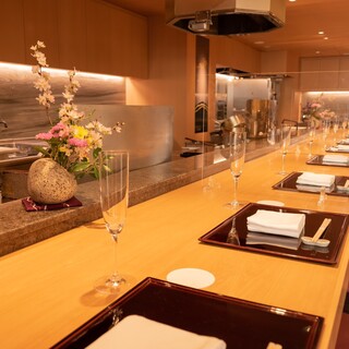 揚げたてが楽しめるカウンター席を完備。目の前で職人があなたのためだけに一つ一つ丁寧におつくりいたしますので、天ぷらの醍醐味をご堪能いただけます。さまざまなシーンでご利用ください。