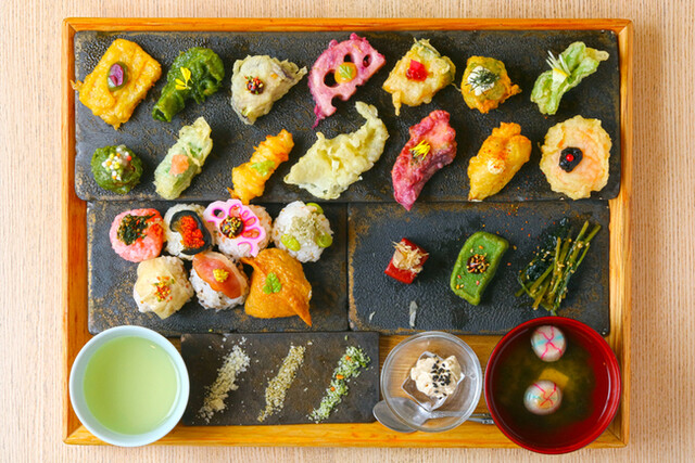 旬の味覚を一度に楽しめる人気の祇園コース。彩り豊かな手まり寿司や揚げたての天ぷらをはじめ、京らしい逸品を少しずつ贅沢に味わえる内容です。一口ごとに広がる季節の風味と美しい盛り付けは、旅の思い出をより華やかに演出します。ランチにもディナーにもおすすめの、京都の魅力を存分に堪能できる特別なコースです。