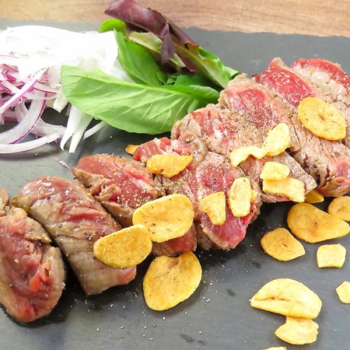 柔らかくジューシーな牛ヒレステーキは、鉄板で丁寧に焼き上げる定番の人気メニュー。旬の焼野菜をたっぷり添え、見た目にも鮮やかな一皿に仕上げます。さっぱりとした味わいで食べやすく、ボリュームも満点。目の前で調理が楽しめるカウンター席では、ライブ感あふれるひとときを過ごせます。