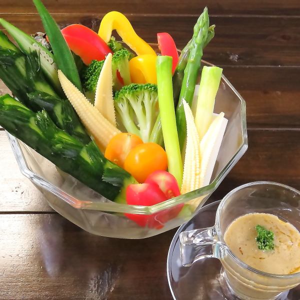 旬野菜をたっぷり味わえるバーニャカウダは、特製カニミソソースでいただく贅沢な逸品。彩り豊かな野菜を熱々のソースにディップして楽しむスタイルで、女性にも人気です。白を基調とした清潔感ある店内は、デートや女子会、ご家族での食事にも最適。カジュアルに本格鉄板料理を楽しめます。