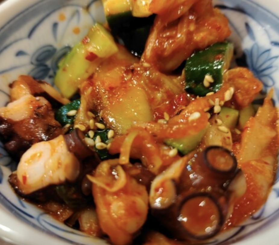 大阪の粉と豆乳、大和芋など、素材にこだわった生地を使用しています。さらに、徳島産の「加賀屋ソース」や京都の製麺所から取り寄せた太角麺を使い、上品な味わいを楽しめます。