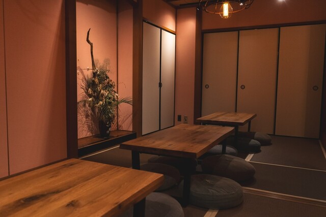 京都の人気店から独立した店主が営む【双葉】。和モダンな雰囲気の中、店主の独断と偏見でセレクトしたどこか懐かしい音楽が流れます。1階には、鉄板で焼き上がる料理を眺められるカウンターや、3~6名でゆったり寛げる小上がりの掘りごたつ個室、カジュアルに使えるテーブル席を完備◎2階にはお座敷が20席あり、貸切での利用も可能です。美味しいお酒と創作系鉄板料理をお洒落に楽しみたい夜は、ぜひ当店へお越しください☆