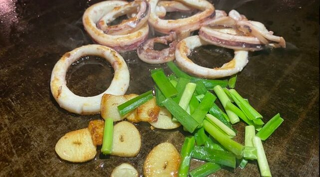 5メートルもの長い鉄板で豪快に焼き上げる鉄板料理が自慢。お好み焼きからホルモン炒めまで、香ばしい音と湯気に包まれながら五感で楽しめるのが魅力です。目の前で繰り広げられる職人の手さばきに、思わず見とれてしまう臨場感。デートや会社帰りの一杯にもぴったりの空間です。
