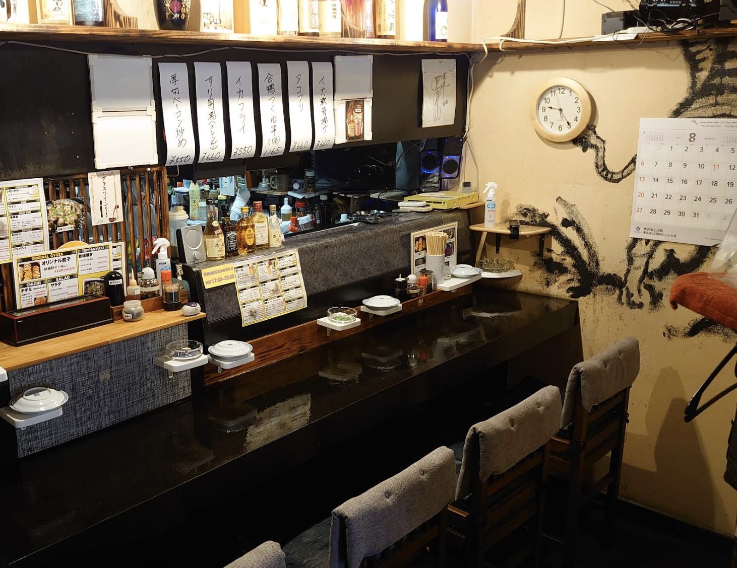 隠れ家的な空間のお店。鉄鍋餃子は外カリカリ中はあっさりジューシーで何個も食べたくなる味です!