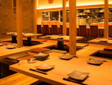 最大60名様までの大規模宴会にも対応可能な広々としたスペースを完備。掘りごたつ席やテーブル席で、ゆったりとくつろぎながら宴会を楽しめます。仕事仲間や友人との集まりにも最適です。