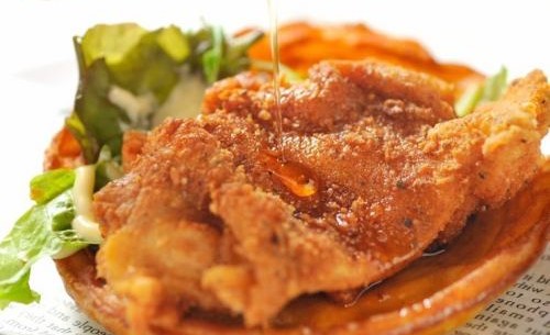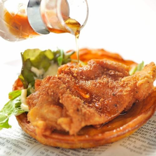 看板メニューは、もも肉のフライドチキンに自家製ワッフルとメープルシロップを合わせたNYスタイルの一皿。外はカリッと中はジューシー、そこに甘じょっぱい味わいが重なり、思わず“ペロリ”と完食してしまう美味しさです。ハイボールとの相性も抜群で、お酒が進む名物料理です。