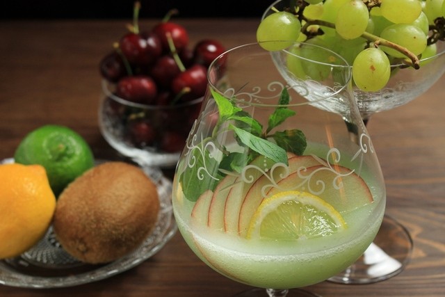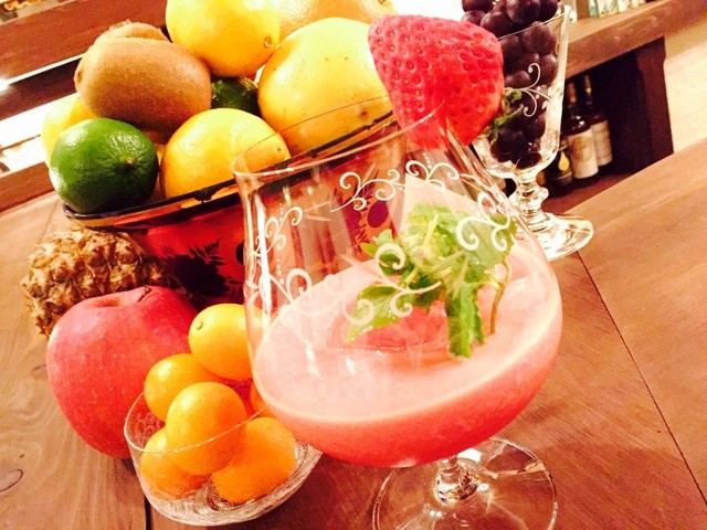 旬のフレッシュフルーツ・カクテル!旬の果実をその場で捌きます。マンゴー、メロン、マスカット、巨峰、白桃、イチゴ、スイカetc・・・ 季節毎の旬の味を。
