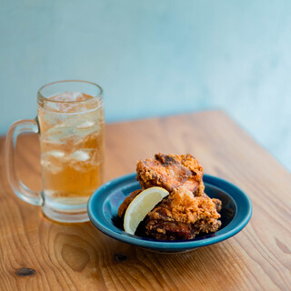 ジューシーなから揚げ2個と角ハイボール1杯がセットになったとってもお得なサービス。名物はTOKIのから揚げ。2度揚げすることで皮はパリッと中はジューシーに。