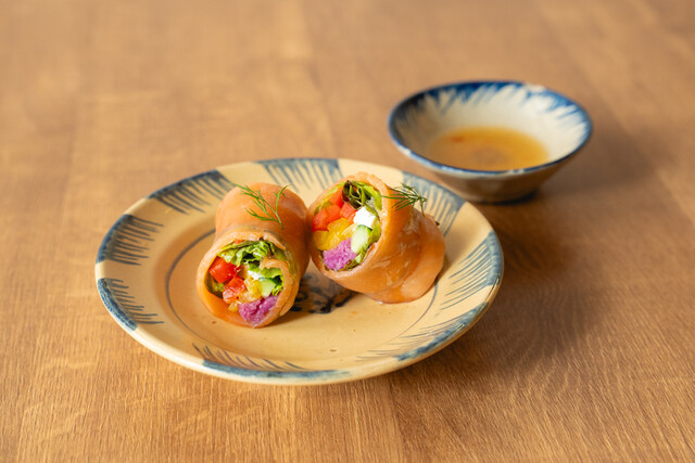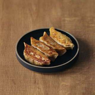 看板メニューはなんと言っても餃子。餃子にはジントニックを合言葉に、野菜多めで、ジントニックの香りと合うように仕上げています。自家製のエスニックな味噌ダレでお召し上がりください。