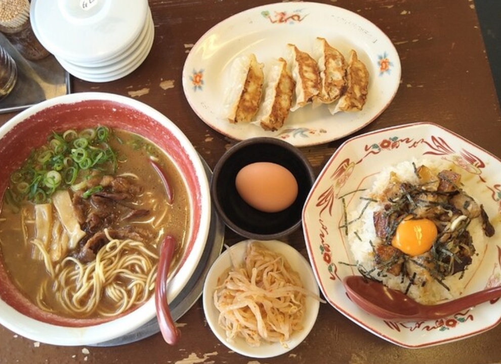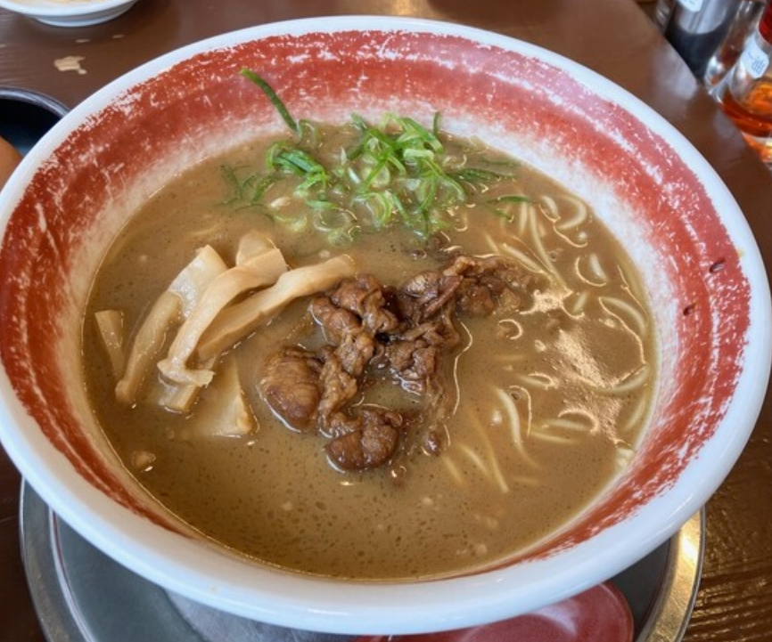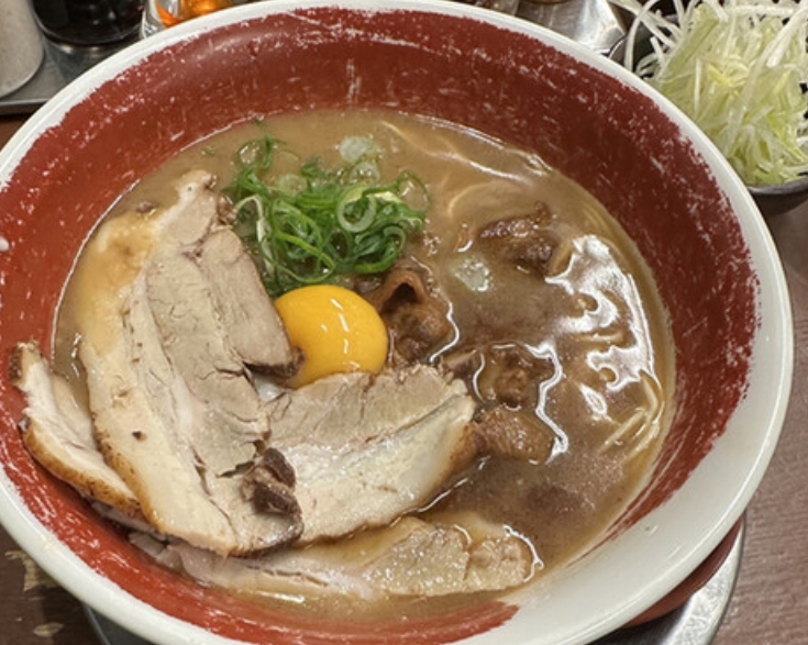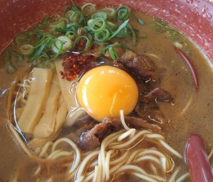徳島ラーメンの名店「麺王 青江店」では、濃厚な豚骨醤油スープと自家製中細ストレート麺が絶妙にマッチ。甘辛い煮込み豚バラ肉に生卵を絡めると、まるですき焼きのような美味しさが広がります。