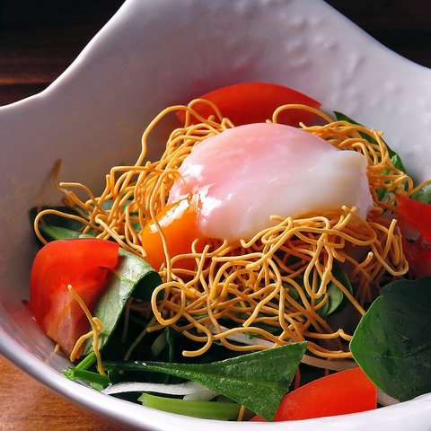 【創作料理!】ほうれん草と温玉のパリパリサラダ