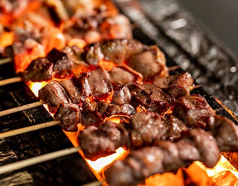 市内の食肉市場で朝〆たばかりの新鮮なお肉を、毎日一串ずつ手刺しする串焼きは、『やきとん』と『やきとり』、『やさい串』など約30種類。どれもお好みで1本ずつからご注文いただけます。焼き台で使っている炭は備長炭。ご注文いただいてから、それぞれの素材に適した焼き加減でじっくり焼き上げます!