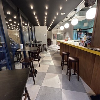 外観はレンガ造りをイメージしたお洒落な雰囲気。カフェとしてだけでなく、ランチやディナー、夜のサク飲みにもご利用いただけます!また、地下にライブスペース、2階にレコードショップが併設されていますので、音楽がお好きな方はぜひそちらにも!