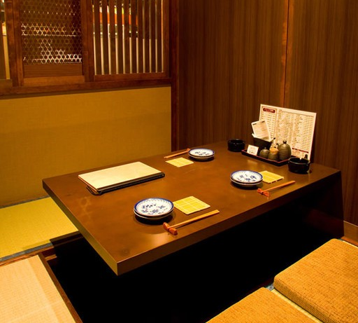 2名様からご利用頂けます、掘りごたつの個室のご利用はいかがでしょうか?天井は吹き抜けになっており、完全な密室にはなりません。個室にはインターホンがついており、お電話での注文が可能です。落ち着いた雰囲気で、ゆったりお食事をお楽しみいただけます。個室利用料などは一切ございませんので、お気軽にお申し付けください。*満室の場合はご容赦ください。