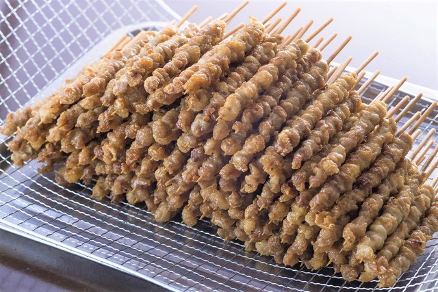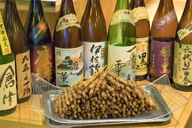 鶏皮を串に巻きつけて焼きあげた『博多名物 とりかわ』。特製しお・しょうゆ・甘めに仕上げたたれの3種の味わいが選べます。余分な脂を落としながらじっくり焼くので、外はカリカリ、中はジューシー。元祖燻製も!