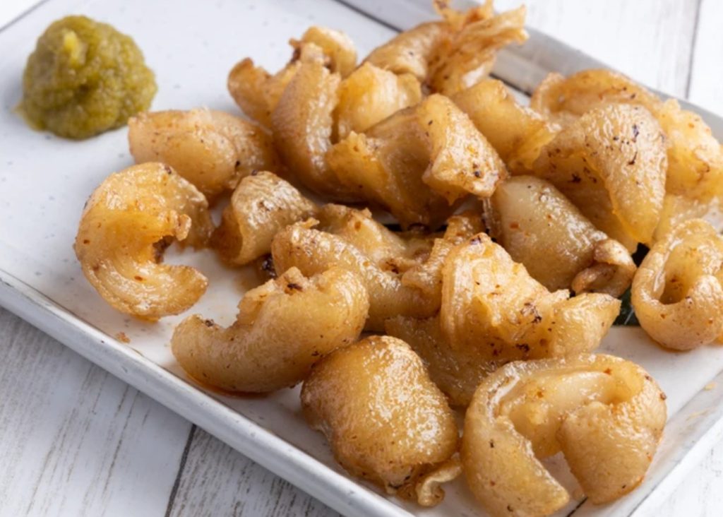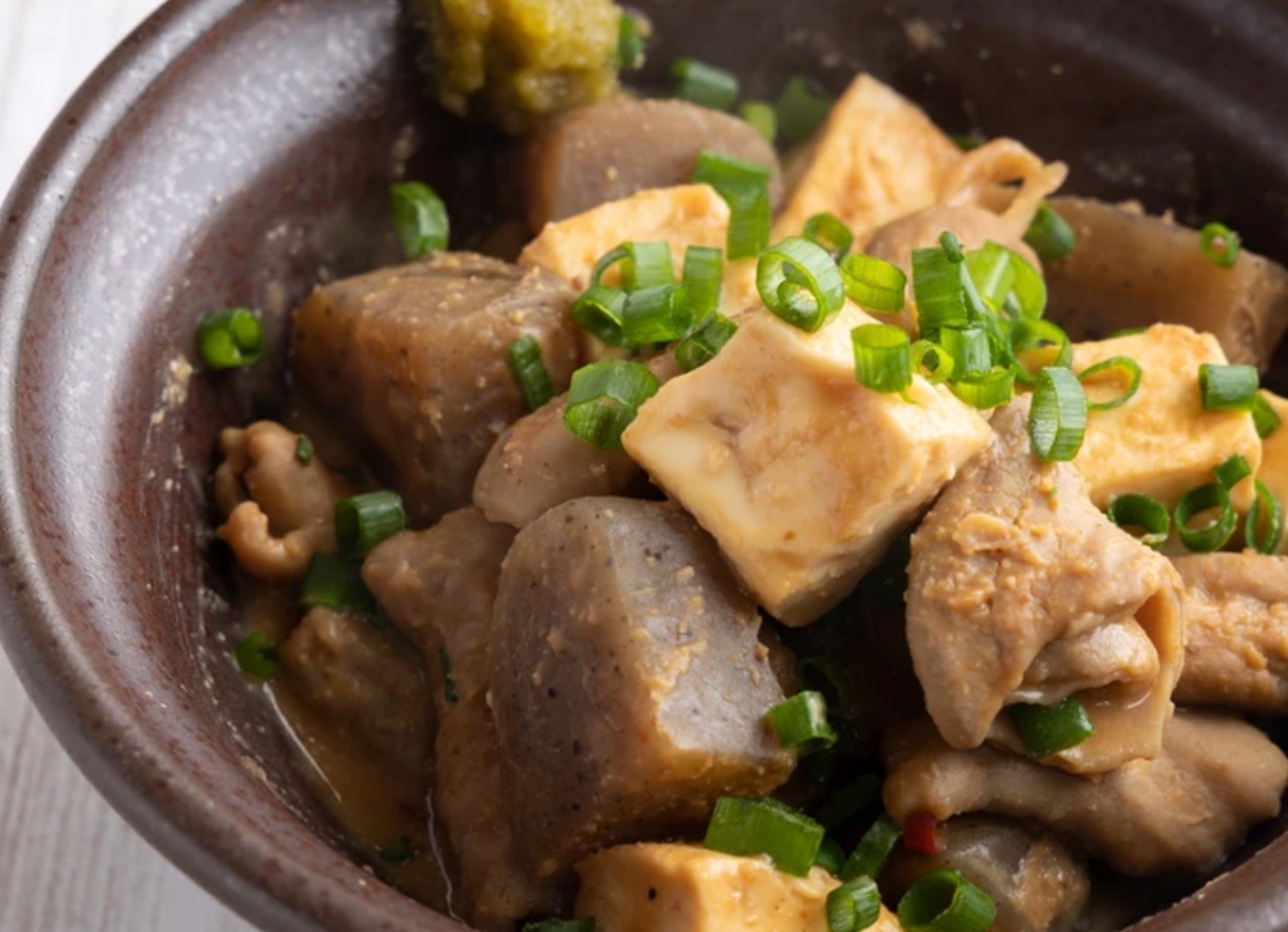 博多周辺では「ダルム」と呼ばれる豚の小腸、いわゆる白モツを、泡盛を使った丁寧な下処理で臭みなく仕上げた一品。九州特有のちょっと甘めの合わせ味噌で煮込んであり、こっくり深い味わいです。