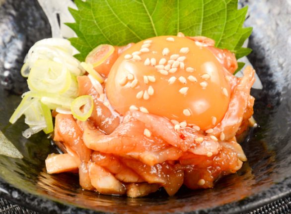 毎日丁寧に仕込むふわふわ食感の自慢のつくねは、月見スタイルで濃厚卵とともにどうぞ。鮮度が命の鳥刺しも3種盛りなど豊富にご用意。炭火でじっくり焼き上げた焼き鳥とともに、素材本来の旨味をご堪能いただけます。