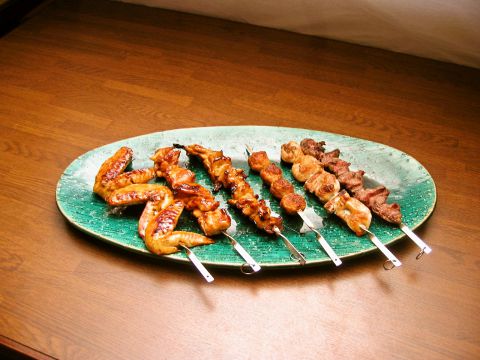 創業以来注ぎ足しの、秘伝のタレで焼き上げた焼き鳥のセット。1本1本がとても大きくてボリューミーです。