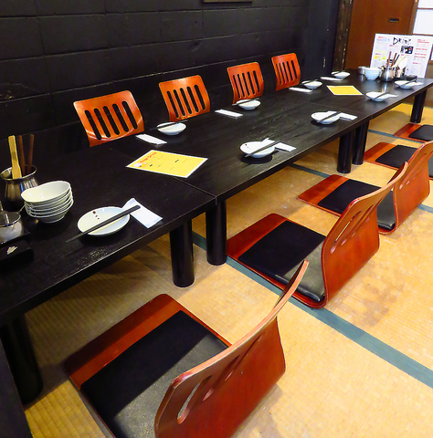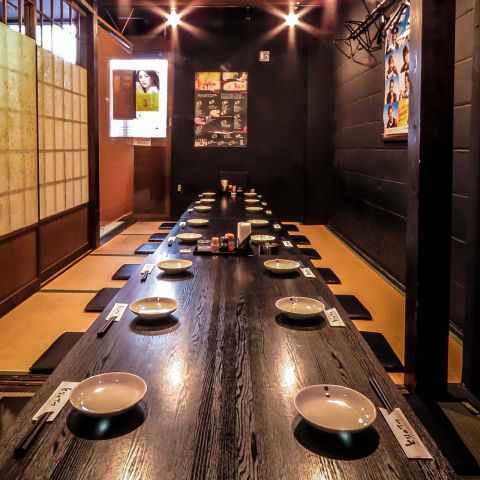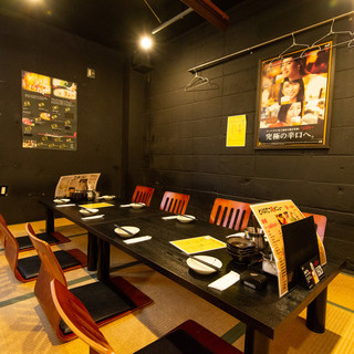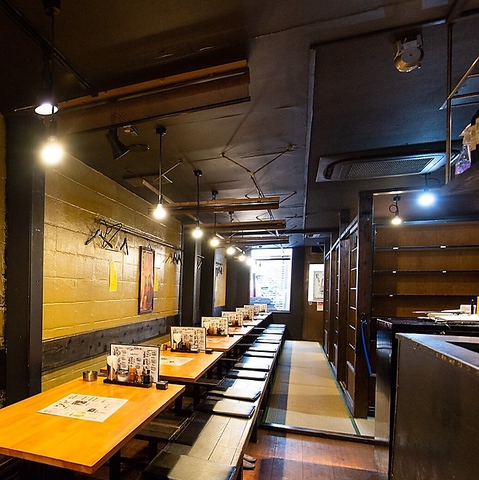 小倉駅より徒歩3分。シックな黒を基調とした店内は、ちょっぴりレトロな印象を感じさせる和情緒溢れる落ち着いた雰囲気。1人飲みに便利なカウンター席やカジュアルな飲み会、宴会に最適なテーブル席、ゆったりと足を伸ばせるお座敷席をご用意しています。また、大切な方と人目を気にせずプライベートな時間を過ごせる堀ごたつの完全個室も。炭火の豊かな香りに包まれながら、一献傾ける至福の時を…。