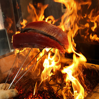 800度以上の炎で焼き上げる!名物・藁焼き!