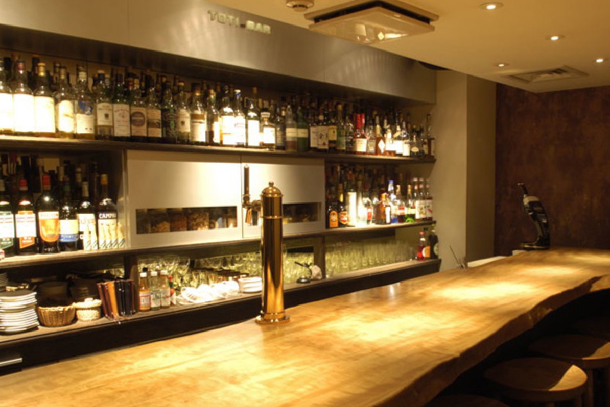 TOTI ni BARは、地上に看板を出さない“知る人ぞ知る”大人の隠れ家。栃の木の一枚板を贅沢に使った温もりある空間で、すべて手作りの料理と本物志向のカクテルをお楽しみいただけます。空を飛ぶ鳥が羽を休める止まり木のように、心から「ほっ」と一息つける時間をお過ごしください。