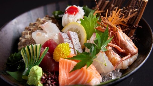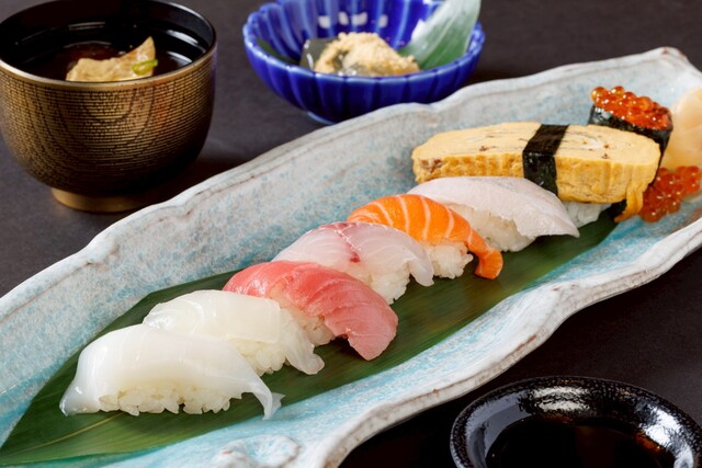 居心地の良いテーブル席で、落ち着いて食事を楽しめる空間。20名から最大60名まで対応可能で、各種宴会や会食にもぴったりです。旬の魚を使ったお寿司など、季節を感じる料理が席を彩ります。ひとり飲みから接待、観光利用まで幅広いシーンに寄り添う一軒です。