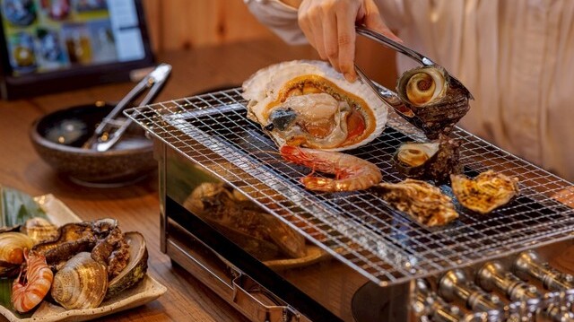 舞鶴漁港水揚げの新鮮魚介を豪快に楽しめる浜焼きは、香ばしさと旨みが際立つ人気メニュー。京都北部屈指の品揃えを誇る日本酒と合わせれば、格別のひとときに。舞鶴の地酒をはじめ、全国の銘酒や希少な限定酒も揃い、酒好きにもたまらない充実のラインナップです。
