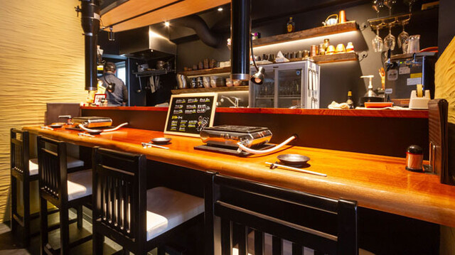 御影駅から約3分の便利な立地に構える【仁和】。店内は黒を基調とした落ち着いた雰囲気の空間となっております。お席はカウンター4席と、6名掛けのテーブル席3卓をご用意。おひとり様はもちろん、グループでのお食事など、様々なシーンでご利用いただけます。居心地の良い空間で、美味しいお肉とお酒をゆっくりと楽しみながら、心安らぐひとときをお過ごしください。