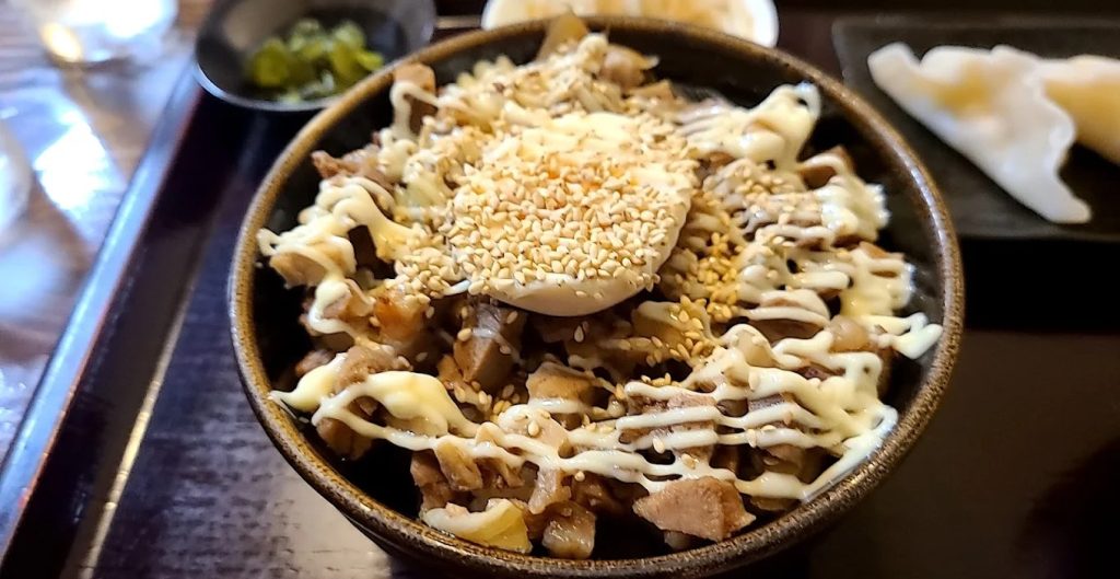 しっかり味の染みたチャーシューが主役の丼は、柔らかさと旨味のバランスが絶妙。さらに親鳥の香ばしい風味が食欲を刺激し、思わずビールが欲しくなる味わいです。麺類とセットで楽しめるボリュームと満足感の高い逸品です。
