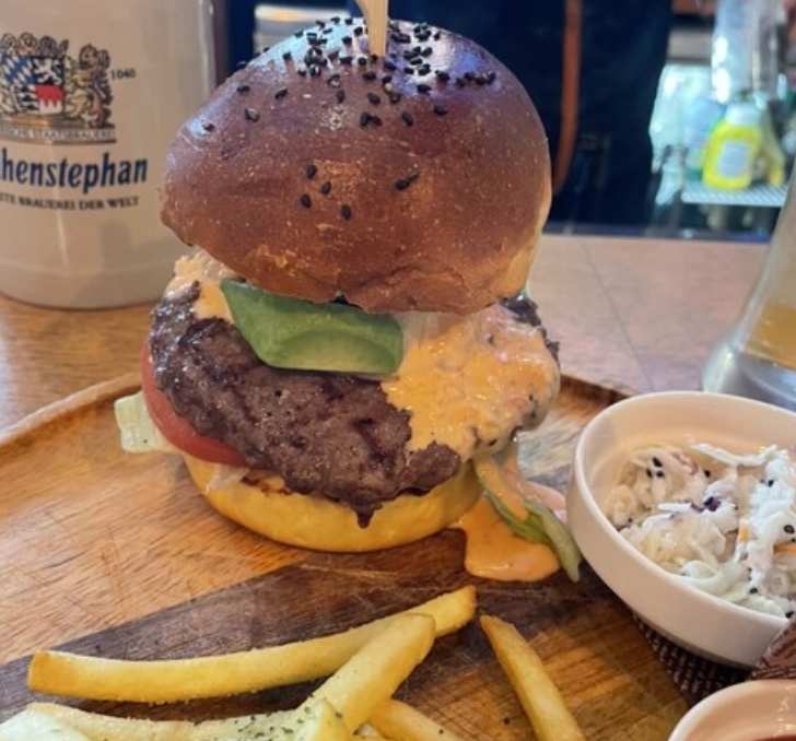 ジューシーな150gパティが自慢の本格派バーガーを種類豊富にご用意!食べ応え抜群で、ガッツリ派も大満足♪テイクアウトOKだからランチにもぴったり!さらに+110円でフライドポテト&コールスローが付くお得なセットに変更可能です!お腹も心も満たされる贅沢バーガー、ぜひ一度ご賞味あれ!