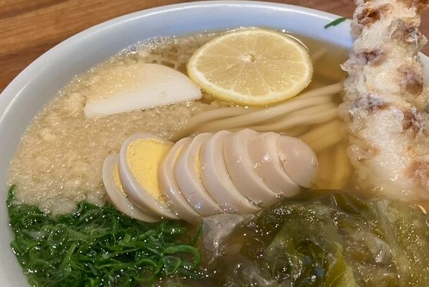 「名物ハイカラうどん」は、煮卵、おぼろ昆布、レモンが絶妙に絡み、さっぱりとした奥深い味わいが特徴です。ひと口食べるごとに味の変化を楽しみながら、さっぱりとした一杯をご堪能いただけます。ぜひご賞味ください。