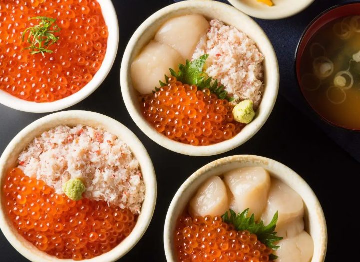 いくら丼や海鮮丼、炙りサーモン箱寿司など、北海道ならではの絶品丼や寿司を多数ご用意。香ばしく焼き上げたサーモンに甘いいくらが絶妙に絡む一皿など、見た目も味も満足できるラインナップでお待ちしております。