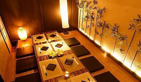 落ち着いた和の空間で、全席完全個室というプライベート感が魅力。2名から大人数まで対応でき、接待やデート、宴会など幅広いシーンで利用できます。飲み放題付きコースは4000円から用意され、生ビールも楽しめる充実の内容。ゆったりとした掘りごたつ席でくつろぎながら、気兼ねなく会話と食事を満喫できるのが嬉しいポイントです。