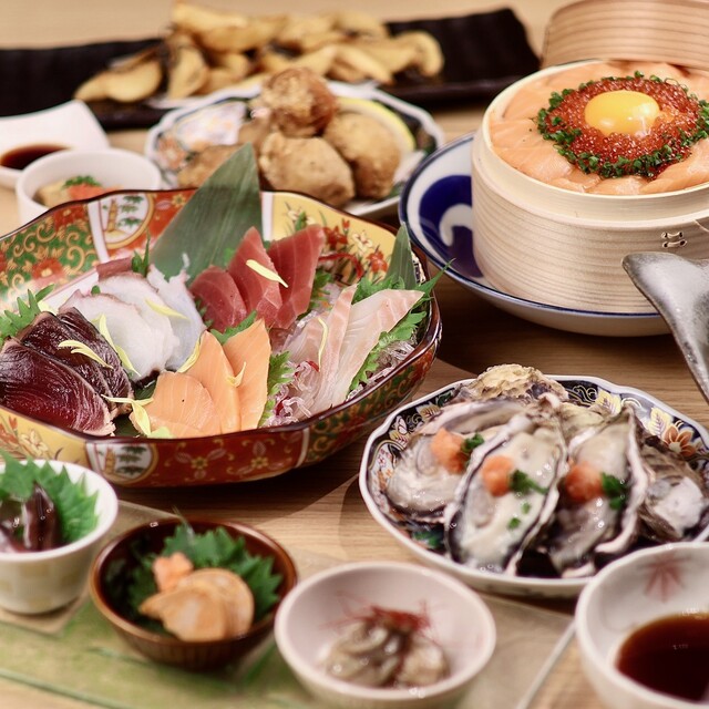 産地直送の新鮮な生牡蠣が味わえる贅沢なひと皿。ぷりぷりの牡蠣はそのままでも、ちょっとしたお酒との組み合わせでも絶品です。飲み放題付きコースもあり、少人数から貸切まで対応可能。旬鮮魚とともに楽しむことで、食事とお酒の相性を存分に堪能できます。