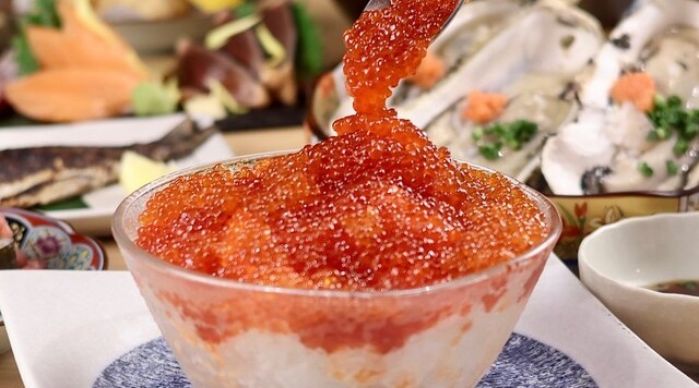 目の前で豪快にぶっかけられるイクラのこぼれ飯は、見た目のインパクトも抜群。新鮮な旬の魚と共に味わえば、旨い魚が酒を引き立て、酒が魚を美味しくします。和モダンの個室空間で、デートや女子会、接待まで幅広く利用可能。映える料理で特別な時間を演出できる逸品です。