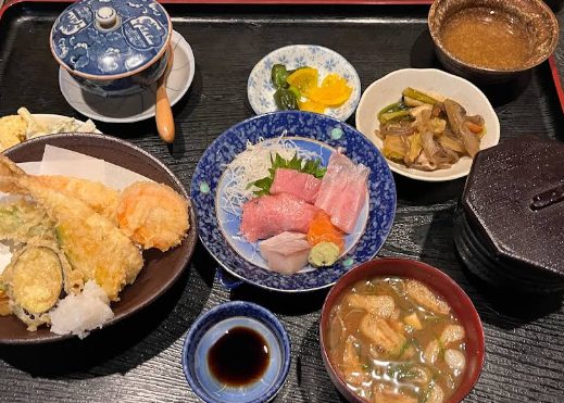お刺身・天ぷら・小鉢に茶碗蒸しまでついた、和の美味しさが詰まった定食を提供しております。鮮度にこだわったお造りは一口で驚きの美味しさ。揚げたてサクサクの天ぷらも彩り豊かで、食べ応え十分。満足感たっぷりのランチをぜひお楽しみください。