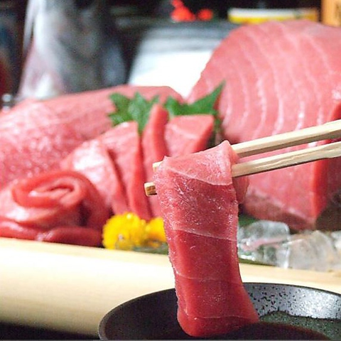 漁港直送の本マグロ中トロ刺しは、当店にいらしたら是非ご賞味いただきたい逸品です♪店内仕込みの特製刺身醤油に付けてお召し上がりください☆どっさり切り落としなど、日替わりメニューも多数ご用意しております♪