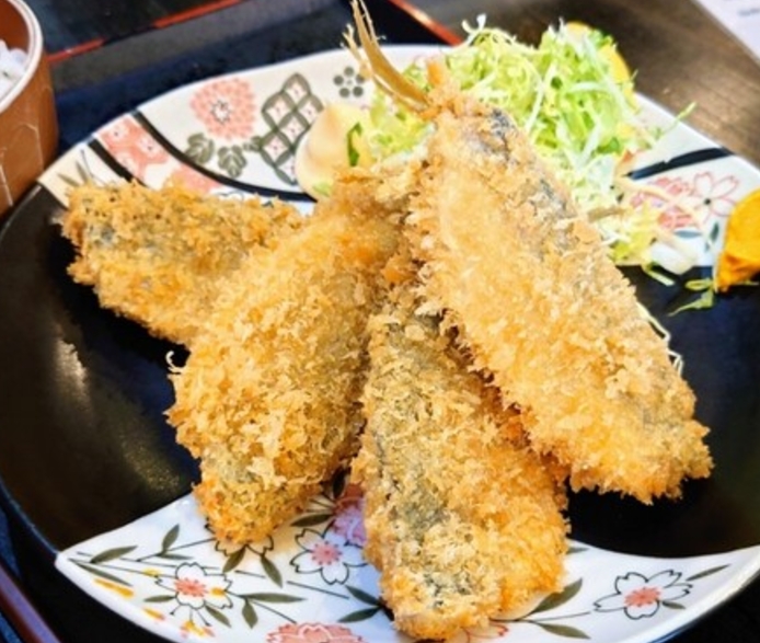 「魚膳」では、新鮮な海鮮を使った海鮮丼や、肉厚なアジフライ定食が人気。絶品のアジフライや、ボリューム満点の天丼、鮮度抜群の海鮮がたっぷり盛られた海鮮丼など、ランチメニューが豊富で、どれも大満足の美味しさです。