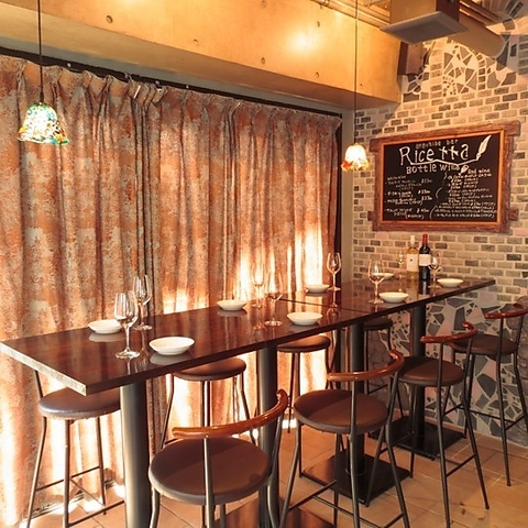 店内は温かみのある電灯が優しく照らす落ち着いた雰囲気。レンガの壁など、イタリアのヴェネチアをイメージした内装はお洒落で洗練された空間となっております。外に面した壁は一面ガラス張りで、開放的な気持ちになれるのが◎15名様~小規模での貸切も可能です!半個室なども対応できますので様々なシチュエーションに合わせて豊富にご活用ください。