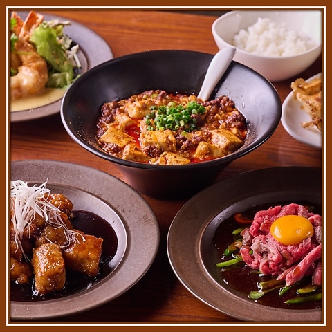 各種宴会コースは飲み放題付きで3,500円からと利用しやすく、黒毛和牛を使った麻婆豆腐やよだれ鶏、大エビマヨなど満足度の高い料理が並ぶ。2階席は平日12名から貸切可能で、最大30名まで対応。仲間同士の集まりから大人数の宴会まで、幅広いシーンで使える充実の内容が魅力。