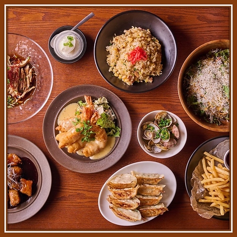 17時~19時限定で9種類の餃子が毎日半額になるのが魅力。もちもち皮と野菜たっぷり餡の創作餃子が気軽に楽しめ、0次会やサク飲みにも最適。1階・2階の多彩な席で、人数に合わせた利用ができ、賑やかな雰囲気も心地よい。ネオ酒場らしい遊び心ある空間で、気軽に本格中華を味わえる。