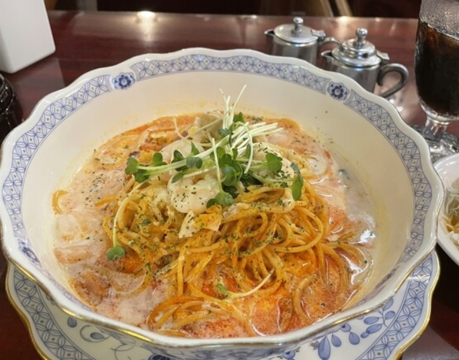 エビクリームスープスパゲッティは、プリプリのエビと濃厚で深い味わいのスープが絶妙に絡みます。スープが飲めるほど美味しく、麺との相性が抜群。食べ応えもありながら、繊細な味わいで満足感が得られます。