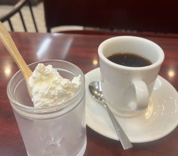 ブレンドコーヒーは、苦さと生クリームの控えめな甘さが調和し、心地よい余韻を残します。ホイップクリームではなく、軽やかな生クリームがコーヒーの味を引き立て、チョコレートと一緒に楽しむ贅沢なひとときを提供します。