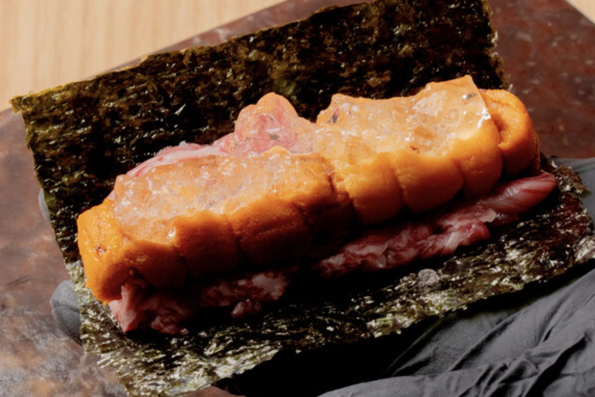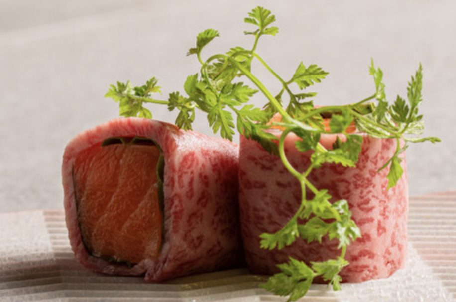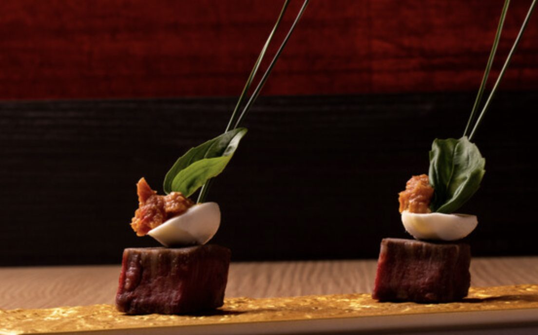 見た目から心躍る肉寿司や茶碗蒸し、タンで巻いた餃子やなど、食感や組み合わせが楽しい料理の数々。シャトーブリアンやイチボなど、肉本来の旨味を最大限に引き出した一皿一皿が魅力です。