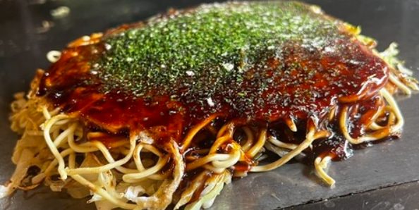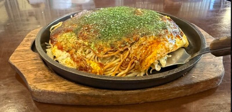 お好み焼きに使われる中太麺は、茹で上げ後に程よく蒸され、パリッとしすぎない柔らかな食感。野菜の甘みと麺のもちもち感が一体となり、やさしい味わいに仕上がっています。全体のバランスが良く、ボリュームがありながらも軽やかに食べられるのが魅力です。