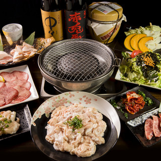 ぷりっぷりのホルモンは網の上に乗せると刺激的な香りが立上り、自然とテンションも最高潮に。ボリュームたっぷりの肉料理に飲み放題が付いたコースもリーズナブルなお値段で用意されています。