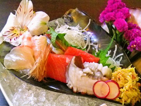 鮮度にこだわってオーナーが毎朝仕入れている。5種類のお造りが盛り合わせになった彩り豊かなメニュー。店主とスタッフのきめ細やかな心配りとおもてなしが自慢。時間を忘れて長居をしてしまいそう。